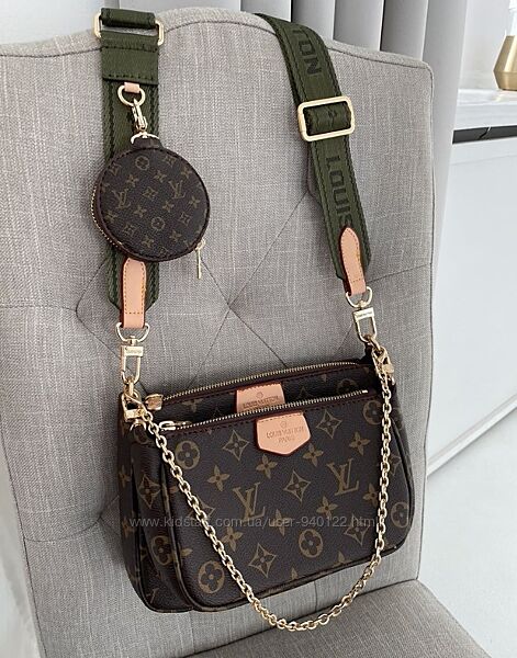 Подробное описание: сумка кросс-боді через плече жіноча з широким зеленим ременем Louis Vuitton