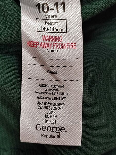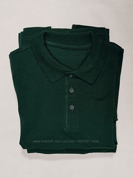 2) Рост 140-146см 10-11лет для девочки футболка поло с короткими рукавами бутылочно-зеленого цвета школьная george
