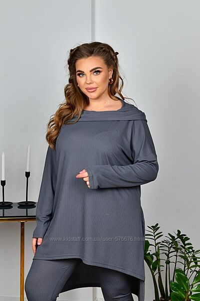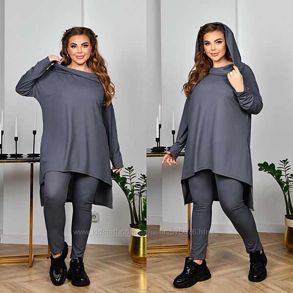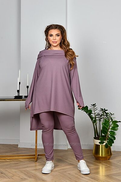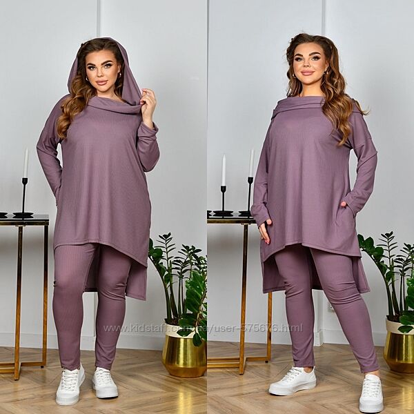 Подробное описание: Стильний костюм рубчик туніка і лосини від 52р до 66р