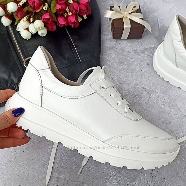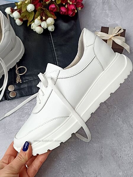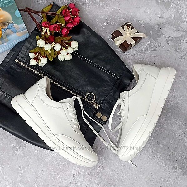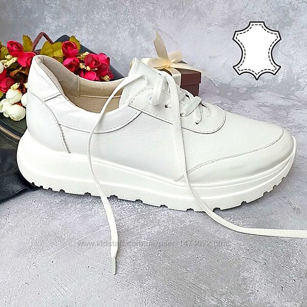 Кроссовки белые из качественной кожиСтелька кожаная с супинатором, что способствует профилактике плоскостопия.