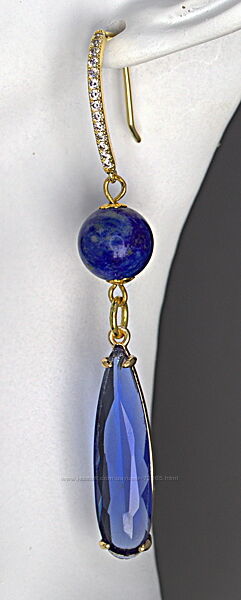 Намисто та сережки з натурального лазуриту з вкрапленням піріту(золотисті прожилки)Фурнітура ювелірна з позолотою 18К та кубічного цирконію.