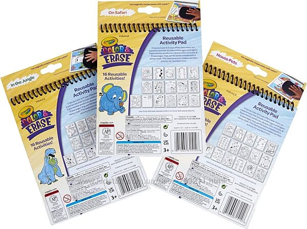 Безпечні багаторазові розмальовки Крайола Crayola Color & Erase Coloring Book Set - Safari, Jungle, Pets .