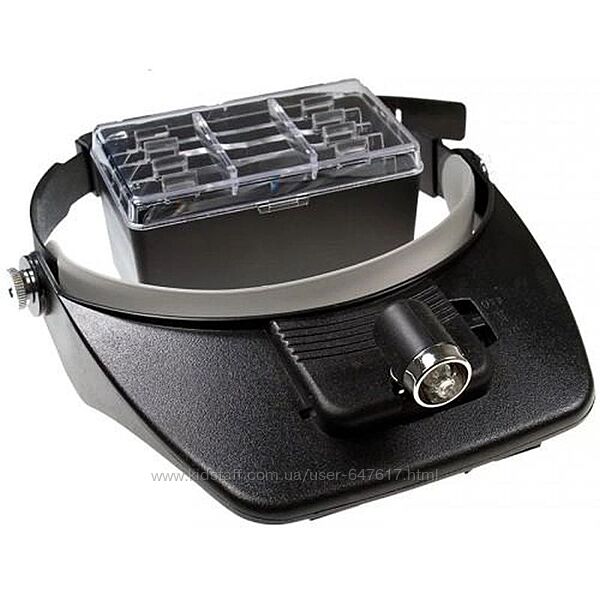 Очки бинокулярные со сменными увеличительными стеклами и подсветкой Mg81001-aБинокулярные очки фиксируются на голове с помощью регулируемого по длине пластикового зажима с фиксатором сзади. После проведения