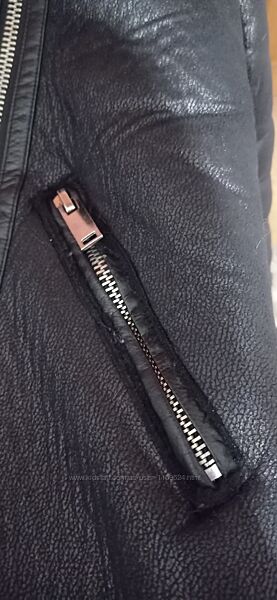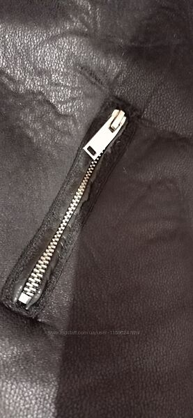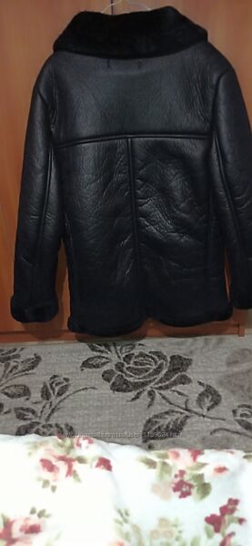 Куртка из эко кожи с отложным воротником, внутри дубленки эко мех. Карманы на молнии. Все молнии рабочие. Под воротником ремень- застёжка. Низ куртки и рукава с отделкой из меха. Температурный режим +5-5.Состояние хорошее, без потертостей. Размер L. Подойдёт на 46-48.