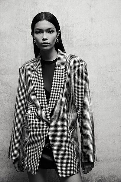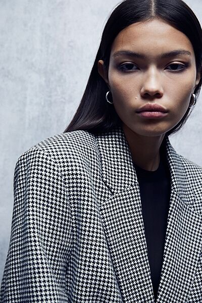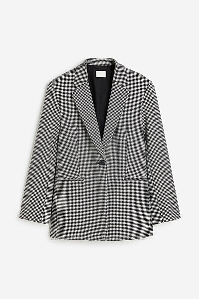 Твіловий піджак оверсайз з коміром з лацканами, гудзиками спереду, м´якими плечима та кишенями з окантовкоюРозмірXXL