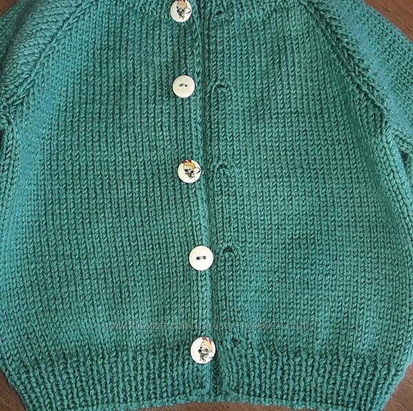 Продаю новую тёплую кофту на 9-12 месяцев. Связана из турецкой полушерсти без швов, анатомическая комфортная посадка, деревянные пуговки, мягкая и абсолютно не колючая. Замеры: полуобхват под мышками 28 см, высота по спинке 31 см, длина рукава по внутреннему шву 22 см. Цвет в реале более спокойный, на последнем фото в моточке очень близко,только чуть посветлей.ТОП предложения