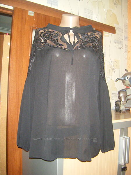 Подробное описание: Шикарная шифоновая блуза с кружевом, размер L - 16 - 50