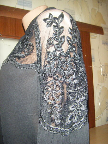 Шикарная шифоновая блуза с кружевом, размер L - 16 - 50