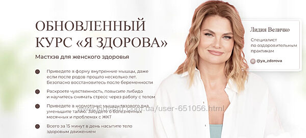 Обновленный курс Я здорова. Тариф с поддержкой кураторов Лидия ВеличкоЗапис готового матеріалу відправляю на ваш імейл, ви можете дивитись онлайн або скачати собі.