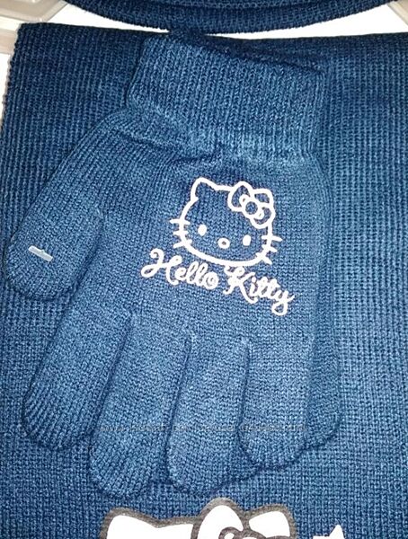 Милі демісезонні комплекти для дівчат Hello Kitty. Оригінал.У комплекті: шапка + шарф + рукавички.