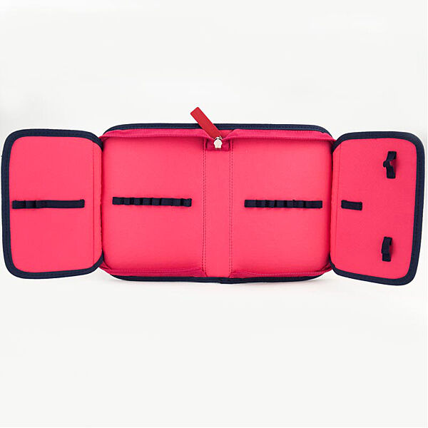 Пенал-книжка имеет отделение с 2 отворотами. Отделение имеет резинки для фиксации письменных принадлежностей, которые сохранят порядок в пенале. Изделие легко вмещает не только пишущие принадлежности, но и канцелярию для уроков труда - ножницы и кисти.