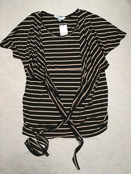 Свободная блузка для беременных и кормящих из вискозы 97% эластан 3% от Dorothy Perkins в однотонную полоску с запахом, V-образным вырезом икороткими рукавами.