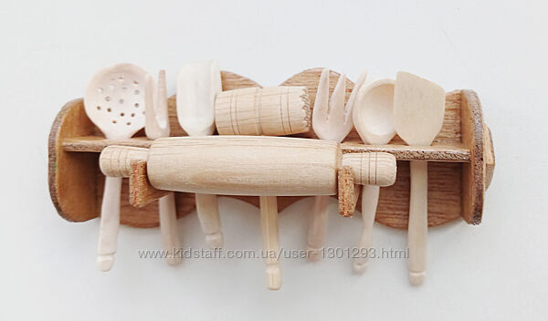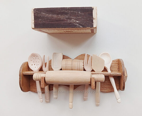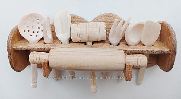 Кукольная кухонная полка с инструментами. Масштаб 1:6. Для кукол типа Барби и ей подобных.Полочка покрыта бесцветным акриловым лаком.