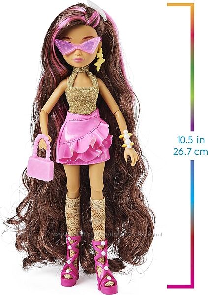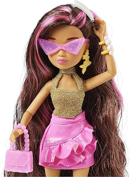 СТИЛЬНИЙ КОМПЛЕКТ, 6 АКСЕСУАРІВ ДЛЯ ЛЯЛЬКИ: одягнувши шкіряні міні, гольфи та платформу-розкладачку, Сірра справляє фурор у Mermaid High! Завершіть її образ браслетом, сонцезахисними окулярами тощо!