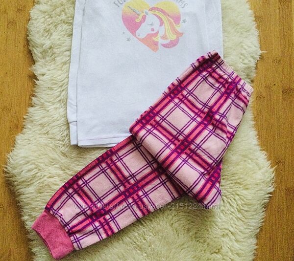 9-10 років тепла натуральна піжама з Однорогом. штаніки байка в клітинку. р