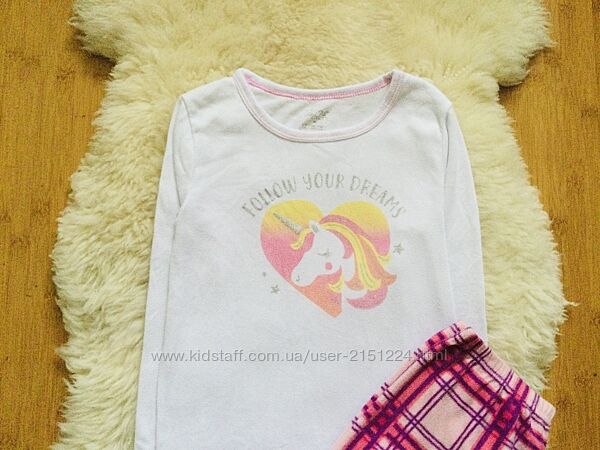9-10 років тепла натуральна піжама з Однорогом. штаніки байка в клітинку. реглан - щільний трикотаж, чудово тягнеться. м"якенька, на манжетахяскрава.