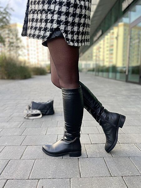 Матеріал верху: натуральна шкіра Матеріал підкладки: натуральне хутро (європейка) Висота від п´яти: 40см. Підошва: 1/3 см. Обхват гомілки: 36-37см. + резинка Устілка: 36р.-23.5см. 37р.-24см. 38р.-25см. 39р.-25.5см. 40р.-26см. Всі фото у нас живі без фотошопу та обробки. Обмін і повернення можливе (за рахунок покупця)Предложения от магазина
