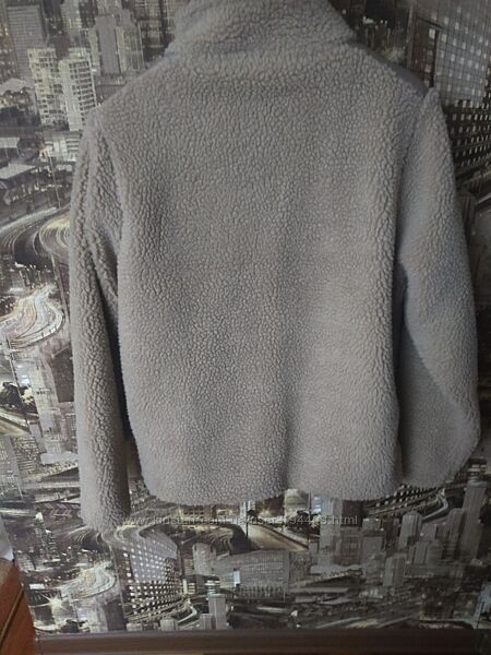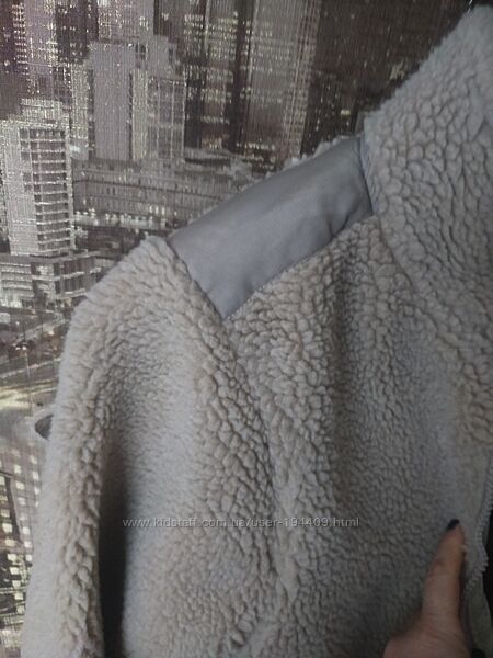 Красивого бежевого кольору, на плечах вставки з плащівки, кишені на змійках, на підкладці, дуже тепла, щільна, м´якесенька, стан нової речі, без дефектів! Довжина 66 см, пог 54 см, рукав від горловини 72 см.