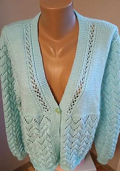 Подробное описание: Ажурный шерстяной кардиган с объемными рукавами Англия