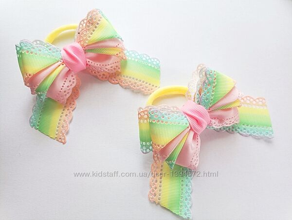 Резиночки для волосся ручної роботи. Розмір бантиків 6-8см. Матеріали репсова та джинсова стрічки, оксамитові.Відправка Укрпоштою та НП. Доставка за рахунок покупця. Оплата 100 %на карту Приватбанку.