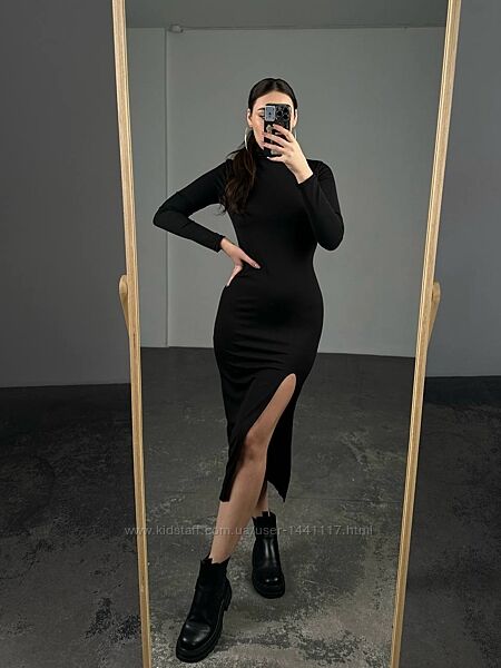Подробное описание: Стильна базова сукня міді в обтяжку рубчик з розрізом на ніжці