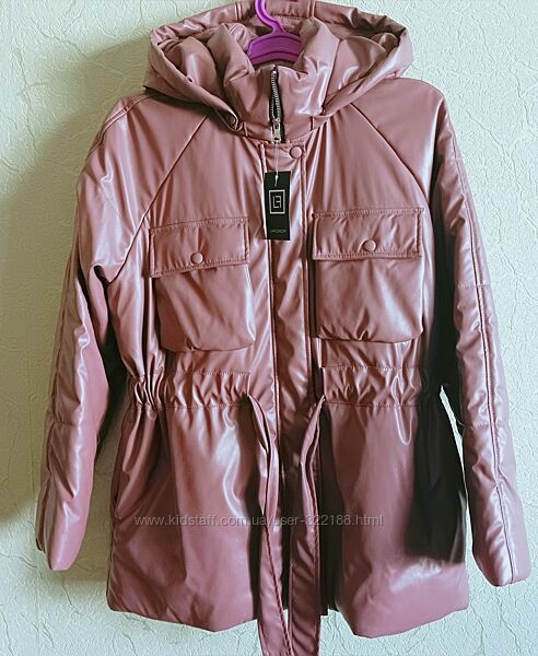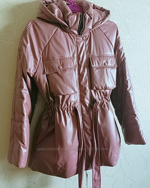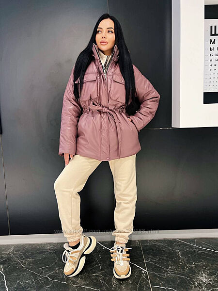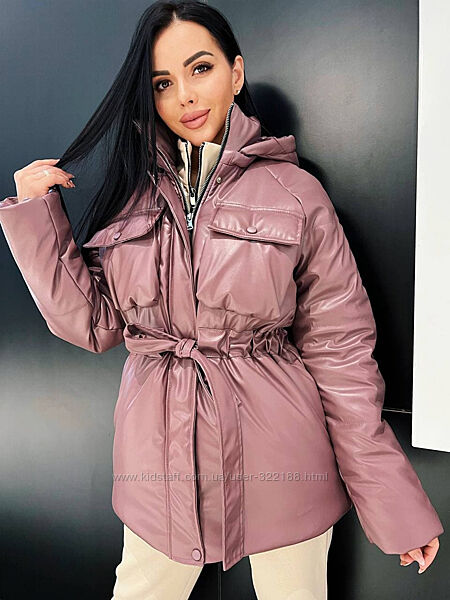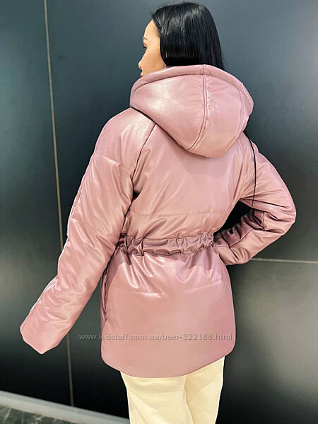 Зимняя тёплая курточка из эко-кожи,пудрово-сливового цвета с высоким воротом и капюшоном на кнопках, который при необходимости отстёгивается. На талии регулируемый пояс. За счёт материала абсолютно не продуваемая и не промокаемая. Качественная металлическая молния Капюшон съемный на кнопках Утеплитель силикон 200 Температурный режим до -15 Производитель:Larionoff Материал:Искусcтвенная кожа Размер 46/48 Состав: 95% полиэстер, 5% эластан Замеры по верху изделия: плечи- 60см ПОГ- 60 см ПОТ ( можно регулировать кулисками)- 56см Рукав - 55см Длина по спинке - 76 см