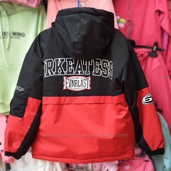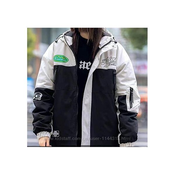 Нова модель демісезонної куртки оверсайз (підходять як на хлопчиків так і для дівчат) приблизно на зріст від 152 до 176. Застібка на блискавку, для додаткового захисту від вітру на блискавці є вітрозахисна планка на кнопках. Верхня тканина мебрана яка захищає від вітру, але в той же час дихаюча. Спереду є дві функціональні кишені і 1 на рукаві. Низ рукава на резинці. Комір капюшона високий, добре захищає від вітру. Капюшон стягується, вшитий. Підкладка стьобана.Виробник: фабричний Китай.