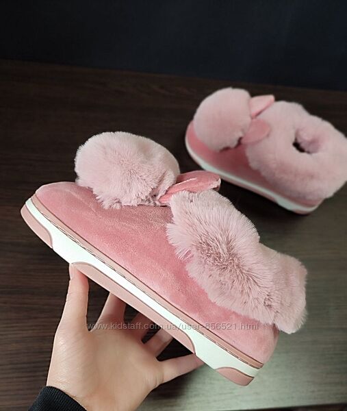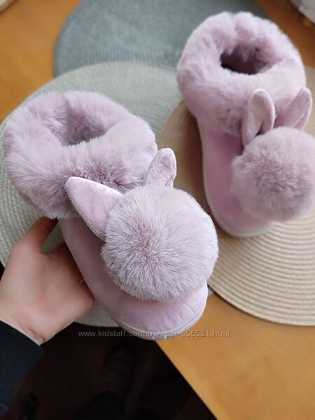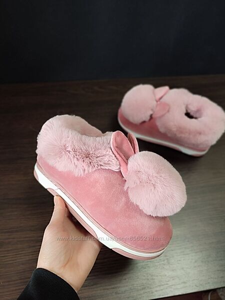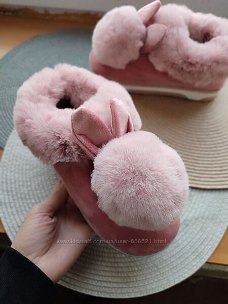 Акция Автоледи Угги короткие слипоны с бумбоном ушками мех мокасины зима