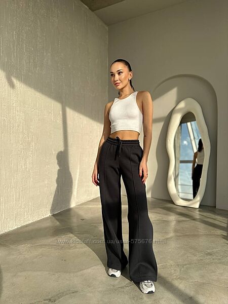 Штани палаццо на резинці з карманами та завищеною талією.Тканина Преміум класу, Туреччина 🇹🇷 тринитка футер начіс