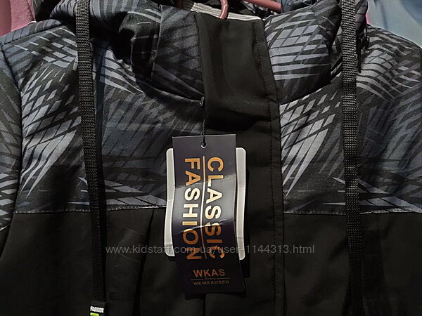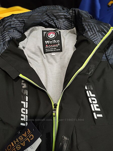 Нова модель демісезонної куртки-вітрівки з утепленням спортивного стилю приблизно на зріст від 140 до 164. Застібка на блискавку з антизащипом, для додаткового захисту від вітру на блискавці є вітрозахисна планка на липучках. Верхня тканина плащівка яка захищає від вітру, але в той же час дихаюча. Спереду є 4 кишені. На рукавах вшиті приховані, трикотажні резиночки, також є утяжка на липучці. Комір капюшона високий, добре захищає від вітру. Капюшон стягується і відстібається . Низ куртки стягується.Виробник: фабричний Китай.