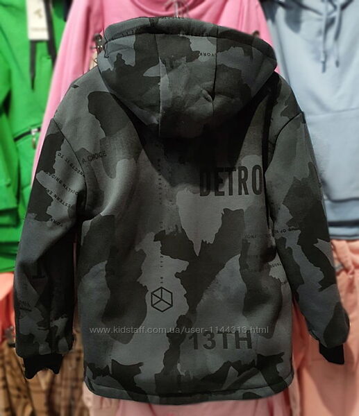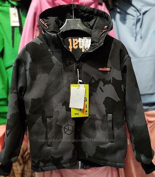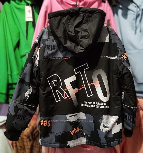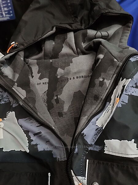 Двохстороння куртка приблизно на зріст від 140 до 158 (орієнтуйтеся по замірам). Застібка на блискавку, для додаткового захисту від вітру на блискавці є вітрозахисна планка. Верхня тканина мебрана яка захищає від вітру, але в той же час дихаюча. Зворотня сторона щільна бавовняна тканина з утеплювачем (на байці). Капюшон суцільний. У наявності 2 зовнішні та 2 внутрішні кишені. Спинка подовжена.Зовнішня тканина: плащівка.