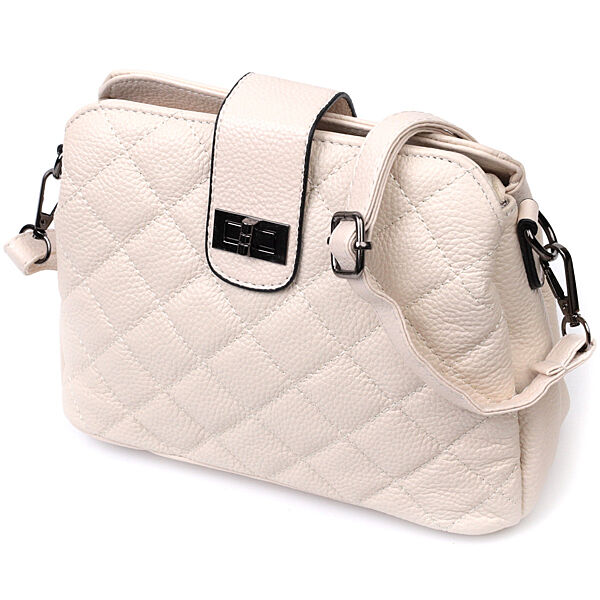Сумка сумочка белая стеганная стильная на плечо кросбоди кожа натуральная 722414