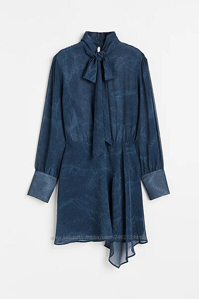 Стильне шифонове плаття H&M з останньої колекціїКоротка сукня із прозорого шифону з візерунком, що імітує джинсову тканину.