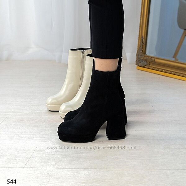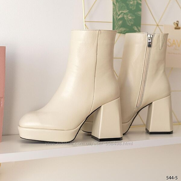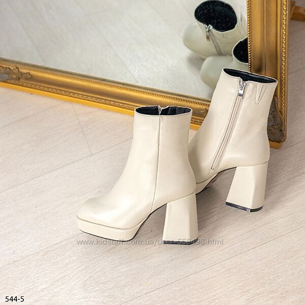 Подробное описание: Демісезонні жіночі шкіряні напівчобітки молочного кольору на стійких підбор