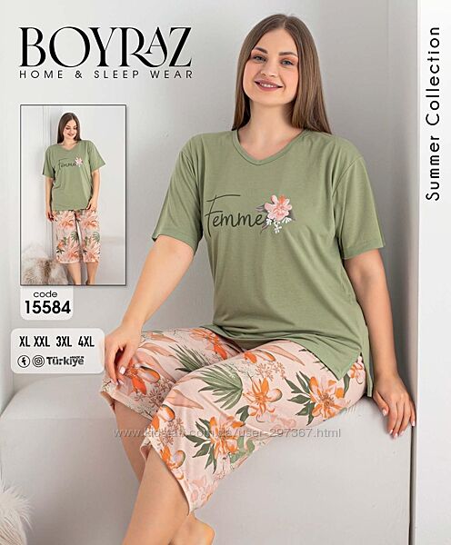 Піжама з капрі - домшній костюм Батал Туреччина Lindros Marilynmood Bayraz IsikДля гарних снів та затишного носіння будинку симпатична піжама жіноча - костюм для дома.