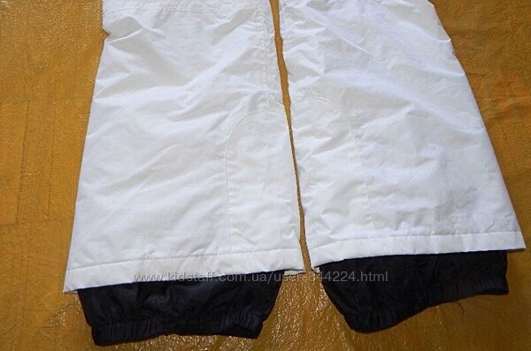 Внизу штанин - снегозащита с резиновым усилением, расстегивается, на липучке и кнопке