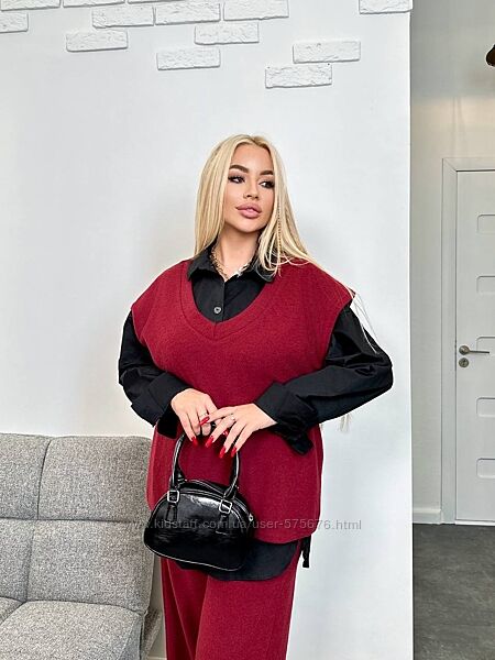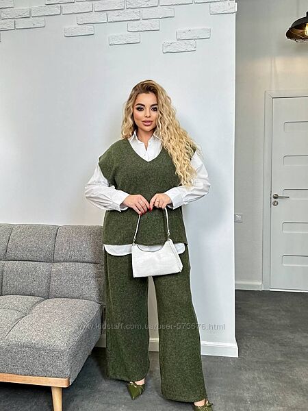 Подробное описание: р.42 до 60р. Двійка жилет та брюки ангора рубчик