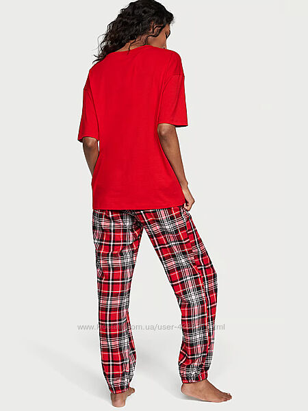 Піжама Victoria’s Secret, Оригінал, у рідному пакеті. Можна на подарунок. В комплекті фланелеві джогери, футболка. Склад: футболка 100% Cotton; джогери 54% Cotton, 44% Modal, 2% other. Колір Lipstick Heritage Plaid. Комплект піжами перев´язаний подарунковою стрічкою, упакований в прозорий пакет із логотипом та штрих-кодом. Пакет не розкриваю! Розмір S
