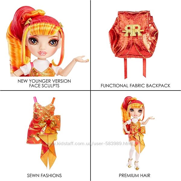 ЧУДОВІ РИСИ: Лорел Де’Віус одягнена з голови до ніг у червоне та оранжеве. У неї чудова молода скульптура обличчя, деталізовані риси обличчя, красивий довгий червоно-помаранчевий хвіст із чубчиком, довгі вії та скляні очі. Збирайте та грайте з усіма цими веселими та красивими модними ляльками Rainbow Junior High.