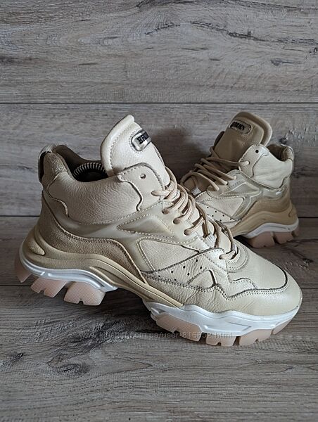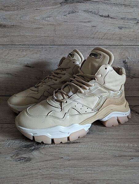 Подробное описание: Ботинки бежевые кожаные кроссовки б/у BRONX Tayke-Over 41р 26 см