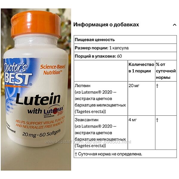 Подробное описание: Doctor´s Best лютеїн з Lutemax 2020, 20 мг, 60 капсул