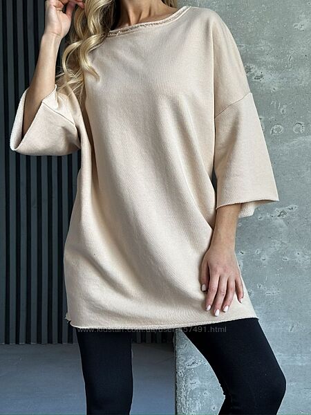 Подробное описание: Трендова довга вільна футболка оверсайз з необробленим краєм туніка сукня