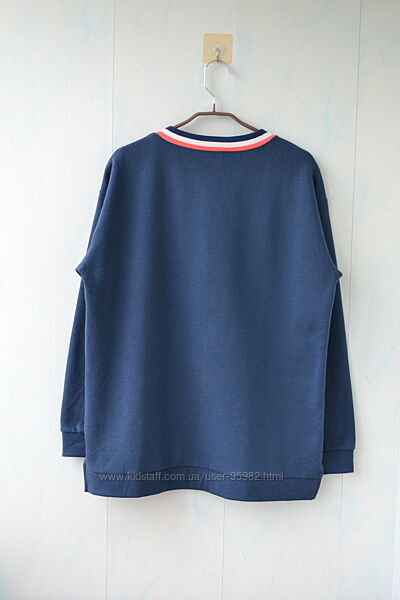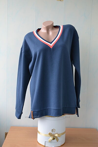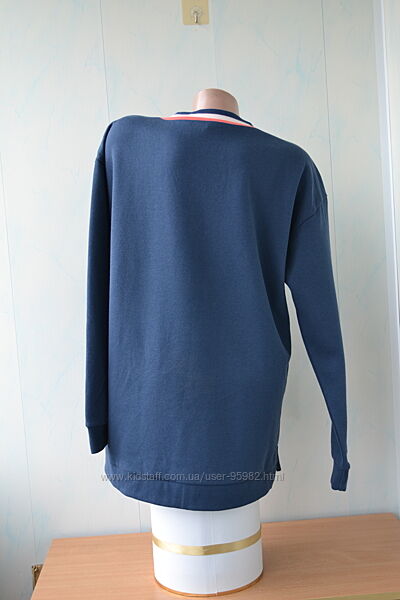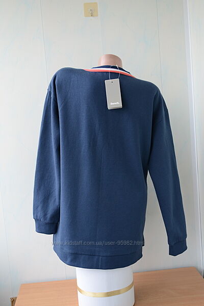 Тепле худі, свішот із начосом, оверсайз з V-подібним горлом Bench на бирці розмір 40/42 європейський. Приємне до тіла, з боків невеликі розрізи, лінія плеча спущена, спинка подовжена,НОГ — 56, поб — 67, довжина розрізу збоку 6/8,5, довжина рукава від горловини — 75, напівобвід рукава біцепсом — 22, плечі — 56, довжина — 70/75