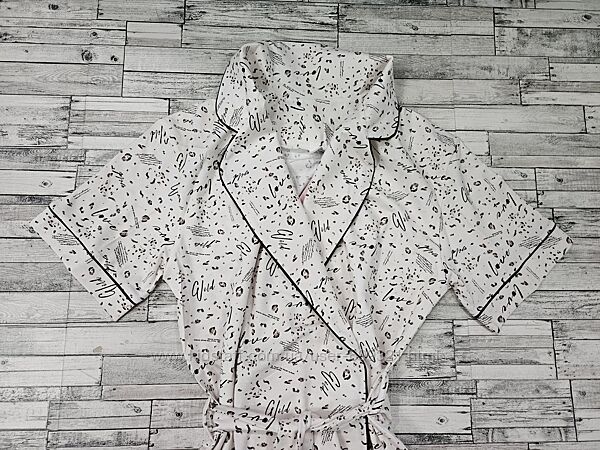 Елегантний домашній халат на запах з широким коміром – додаткова можливість підкреслити свою жіночність.Дрібний принт з романтичними мотивами має оригінальний вигляд. Світлі тони пасуватимуть жінкам будь-якого віку, підкреслюючи їх невимушеність. Вузький пояс підкреслює талію та гарно відтіняє прямий крій халату. Вільний подовжений рукав забезпечує комфорт, якого всі так прагнуть в домашніх умовах.