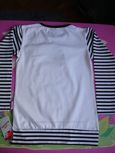 Изумительная туника, футболка, кофточка, джемпер для девочки с длинным рукавом .Цвет: белый с черным.