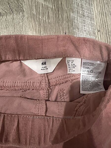 Клешевые штаны и розовые HM на рост 104 см. Новые. Сток. Привезены с Германии. Без бумажных этикеток. Внутренние этикетки сохранены. На резинке. Цвет персиковый. Длина 59,5 см . Внутренняя 42 см. Ширина пояс 23,2 смв наличии и другая одежда на такой возраст
