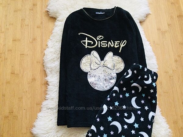 8-10 років, 140 зріст Disney пухнаста флісова піжама з Міні Маус. Золоті та срібні пайєтки. тепла, м"якенька. штанці з принтомСтан ідеальний!
