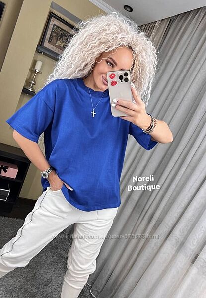 Супер стильная удлиненная футболка ОверсайзЗаниженная линия плеча,свободный рукав,мелкая машинная вязка из нежнейшего хлопка