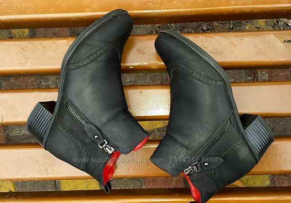 Демисезонные ботинки для девочки на устойчивом каблуке изготовлены с еко кожи, внутри есть утеплитель, по бокам ботинка