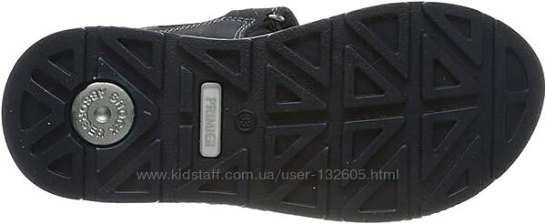 - Під п´ятою у підошві Primigi Anti Shock System розміщена точка поглинання ударів - це підтримує амортизацію в п´яті. Забезпечує захист і розвантаження суглобів.